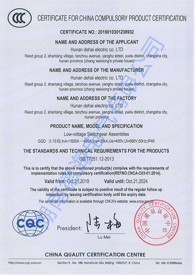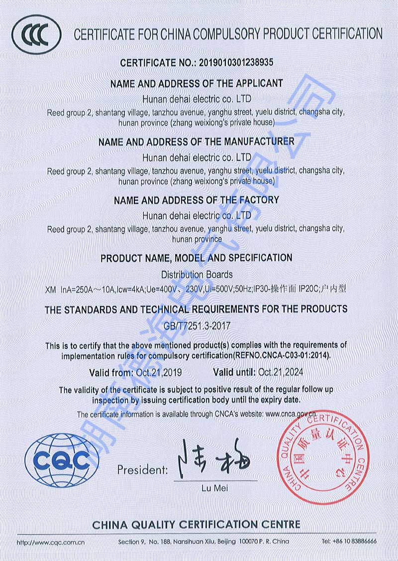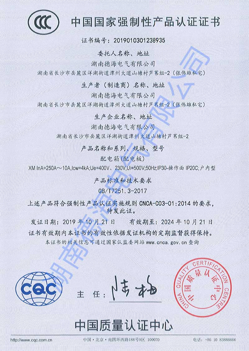 湖南德海電氣3C認(rèn)證
